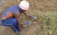We planted the sprigs at 100mm centres and, initially, the sprigs died